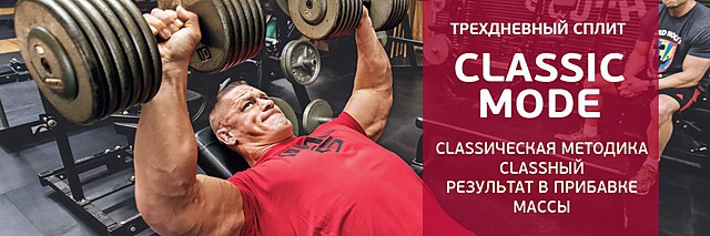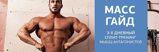 The proposed training program for the gym for mass gain will not only help increase muscle volumes, but also develop power capacity. For this purpose, 4 small cycles were specially selected, which are performed alternately one by one. The alternation of fundamentally different training regimes does not allow the muscles to get used to the loads and ensure their relentless growth.Award: