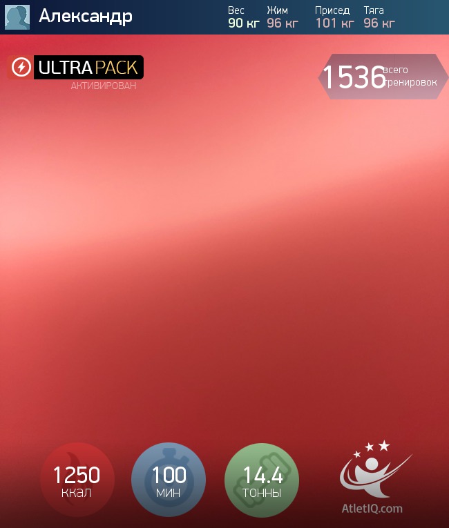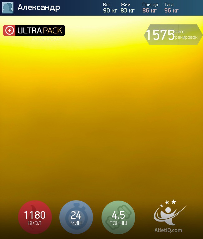 From the traditional "pumping" to brutally hard work, from the usual bodybuilding techniques to hard power training - the champion of iron sport must be a universal. AtletIQ offers you an integrated program of "new periodization", which will add to you the volumes and at the same time will endow you with incredible (for a regular athlete) strength.Award:
