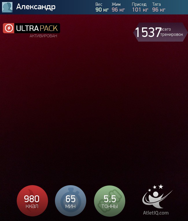 "I want to become giant!" With this thought you fall asleep and wake up, but the universe does not hurry to fulfill your wishes! No wonder: autosuggestion, of course is powerful thing, but workouts in the gym are much more effective. You can see this on your personal experience, having experienced a super-voluminous dumbbell program from AtletIQ!Goal: