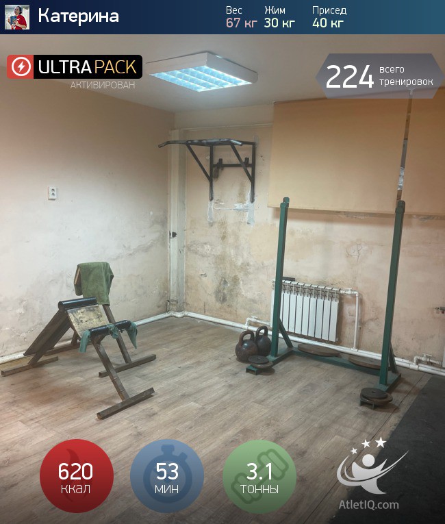 Нет времени тренироваться чаще 1 раза в неделю? Тяжелый спорт предлагает решение — «держим» мышцы тренировочным объемом. Уменьшая количество недельных тренировок, знай — следует сделать акцент на объеме и интенсивности тренинга. Используй мощнейшие многосуставные упражнения, дави «ацкой» силовой работой, удивляй свое тело, постоянно варьируя нагрузку — не дай своим мышцам «раствориться».Награда: